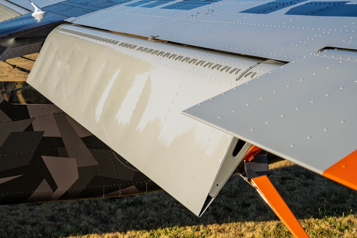 This wing, which uses a custom airfoil, is the result of extensive testing on the RV-15 engineering prototype. We’re thrilled with its performance, especially the large, efficient flaps that give the airplane unmatched low-speed handling and, because they’re so efficient we could reduce wing area, help improve cruise speed — all while preserving the kind of intuitive and balanced “RV handling” that pilots love.