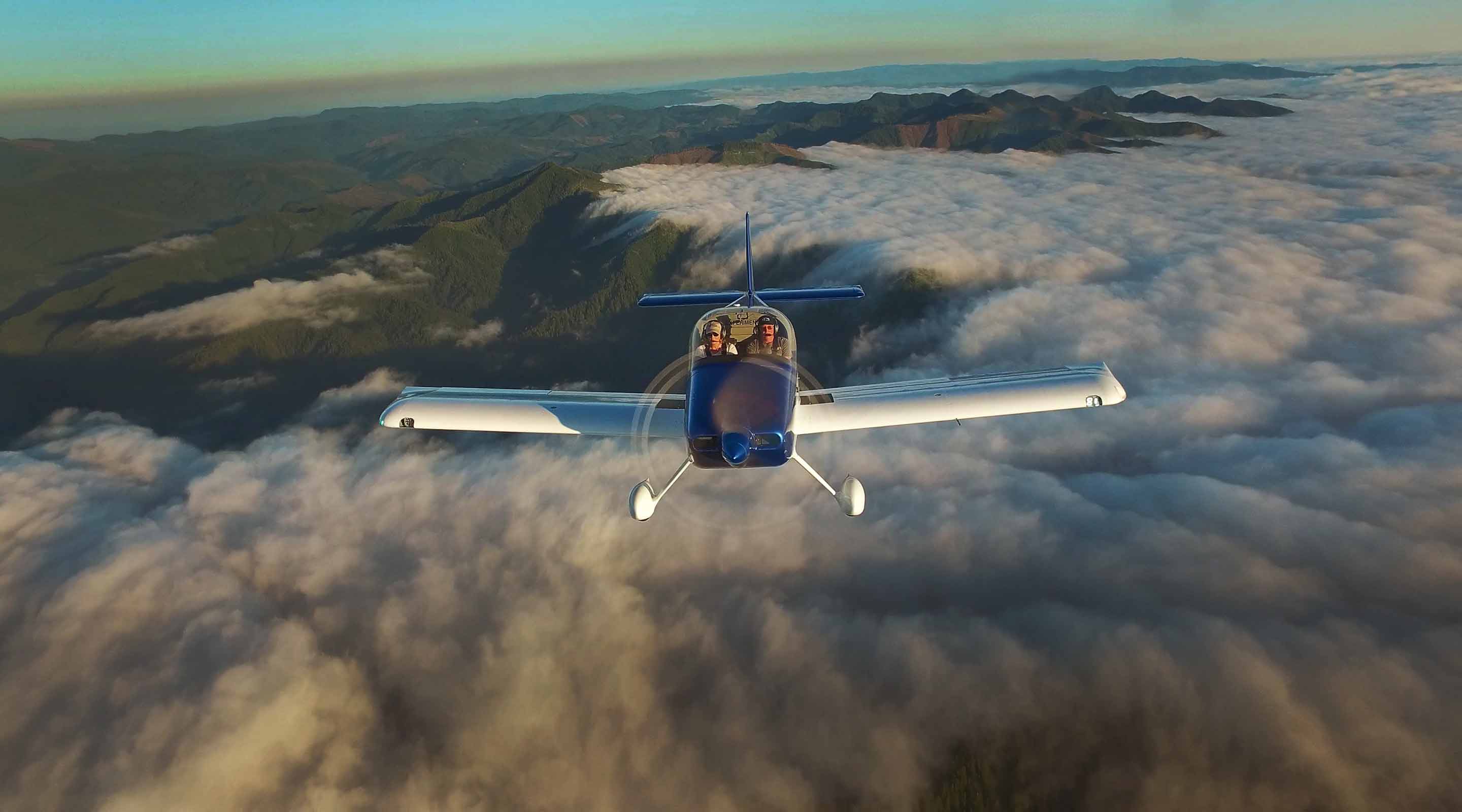 The RV-14 really comes into its own as a sport-touring airplane. The power and the wing allow a fully-loaded RV-14 to cruise at altitudes that easily clear any terrain on the continent. The wide cabin and large instrument panel give occupants plenty of room and information. With a full fuel load of 50 US gallons, you’ll still have 510 pounds for people and baggage — in other words, two 200-pound people can take 55 pounds of baggage — each! Better yet, you won’t have to leave your pocket knife or shampoo at home…